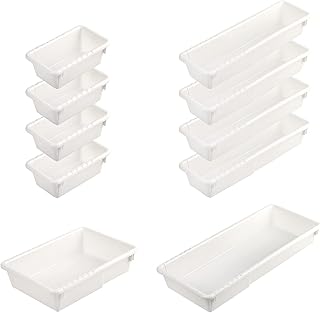 Wowganiser 引き出しオーガナイザートレイ 引き出しディバイダー 調節可能な仕切り付き キッチン用品 メイクアップ 文房具 カトラリー 下着 4枚セット 大きなトレイ2枚と小さなトレイ2枚 ホワイト 長さ10.6インチ