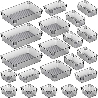 Puroma 21個 デスク引き出しオーガナイザートレイ 4サイズ 大容量プラスチック容器 キッチン引き出しオーガナイザー バスルーム引き出しディバイダー メイクアップ キッチン用品 ジュエリー ガジェット用 グレー