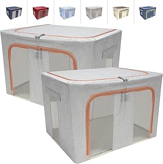 LaiBa 衣装ケース 2個組 収納ボックス 折りたたみ 衣類 収納袋 多機能ステンレス製ブラケット ふた付き 収納ケース (グレー, 2)
