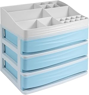 OBMMIRAO ラージブルー コスメティック メイクアップ オーガナイザー 引き出し付き プラスチック スキンケア メイクアップ 収納ボックス バスルーム カウンタートップ マニキュア リップスティック ホルダー デスクトップ 日除け 収納ケース