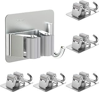 モップほうきラック 壁掛け収納ラック 棚 フック1個 自己粘着収納ラック バスルーム キッチン オフィス クローゼット 庭 5個