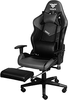 ZENEZ ゲーミングチェア パソコンチ 多機能 オフィスチェア 135°-140°リクライニング可能 オットマン付き オームレスト高さ調節可能 ネッククッション 腰クッション付き ブラック&グレー