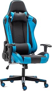 GALAXHERO ゲーミングチェア【クロノス】【高級PUレザー/オットマン付き】 オフィスチェア【安心の一 デスクチェア【耐荷重150kg】 リクライニング 腰痛対策 調節可能 ヘッドレスト ランバーサポート ロッキング ブルー ADJY613BU