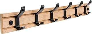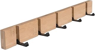 MDKDKDL 壁掛け フック ウォールハンガー 移動フック 整理整頓 天然竹製 収納フック コート掛け 帽子掛け 洋服掛け 省スペース 高耐荷重 ナチュラル (6連)