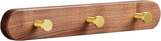 Casavilla 壁掛けフック ウォールハンガー 木製 整理整頓 アッシュウッド アルミ 収納フック 3連 帽子掛け 洋服掛け コート掛け タオル掛け クルミ材真鍮収納フック GJ0815-3 (3連30cm)