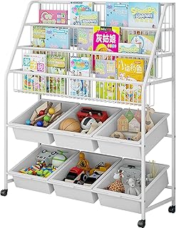 playkids 絵本ラック 子供本棚 大容量 玩具収納 子供 おもちゃ箱 整理棚 おもちゃ収納 おもちゃ箱 収納本棚 おもちゃ収納 (92CM)