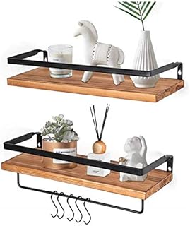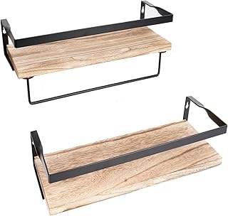 HASONA ウォールシェルフ 壁掛け棚 壁 棚 ラック 2個セット 小物落下防止 おしゃれ 天然木製 幅40cm 玄関/キッチン/洗面所/寝室 取り付け簡単 タオルバー付き ライトブラウン