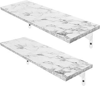 HASONA ウォールシェルフ 壁掛け棚 (防水 防カビ 壁 棚 ラック 幅58cm×奥行18cm) 防虫 滑らか 2個セット おしゃれ 木製 玄関/キッチン/洗面所/寝室 取り付け簡単 吊り穴 日本語取扱説明書付き 大理石柄