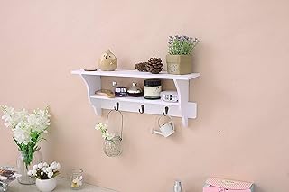 Love-KANKEI ウォールシェルフ 壁掛け棚 ウォールラック 収納棚 2個セット ネジ付き 天然木製 日本語の取扱説明書付き (ホワイト)